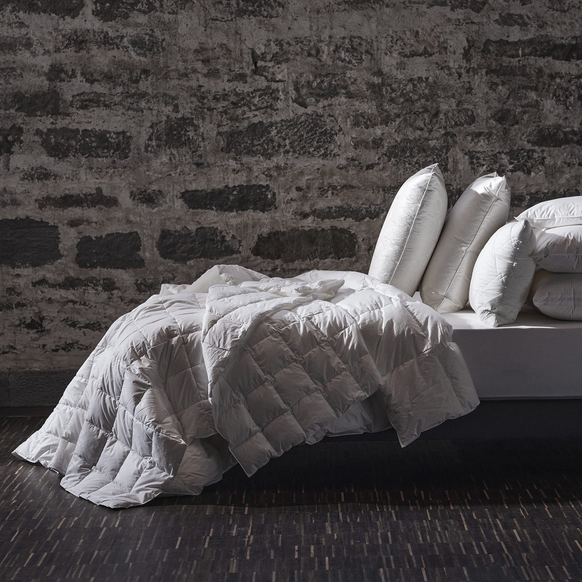 Пуховые спальные принадлежности занимают одно из ключевых мест в ассортиментом ряду Christian Fischbacher. К производству своих подушек и одеял компания относится с особой педантичностью и деликатностью, строго учитывая экологические и качественные стандарты. Материалом для создания таких изделий служат пух и перья гусей северных пород с фермерских хозяйств, где бережно относятся к птицам и не прибегают к живому ощипыванию. После сбора сырьё промывают чистейшей родниковой водой из горного источника, принадлежащего самой компании, а затем сортируют и превращают в мягкие и воздушные наполнители эксклюзивных спальных принадлежностей бренда.