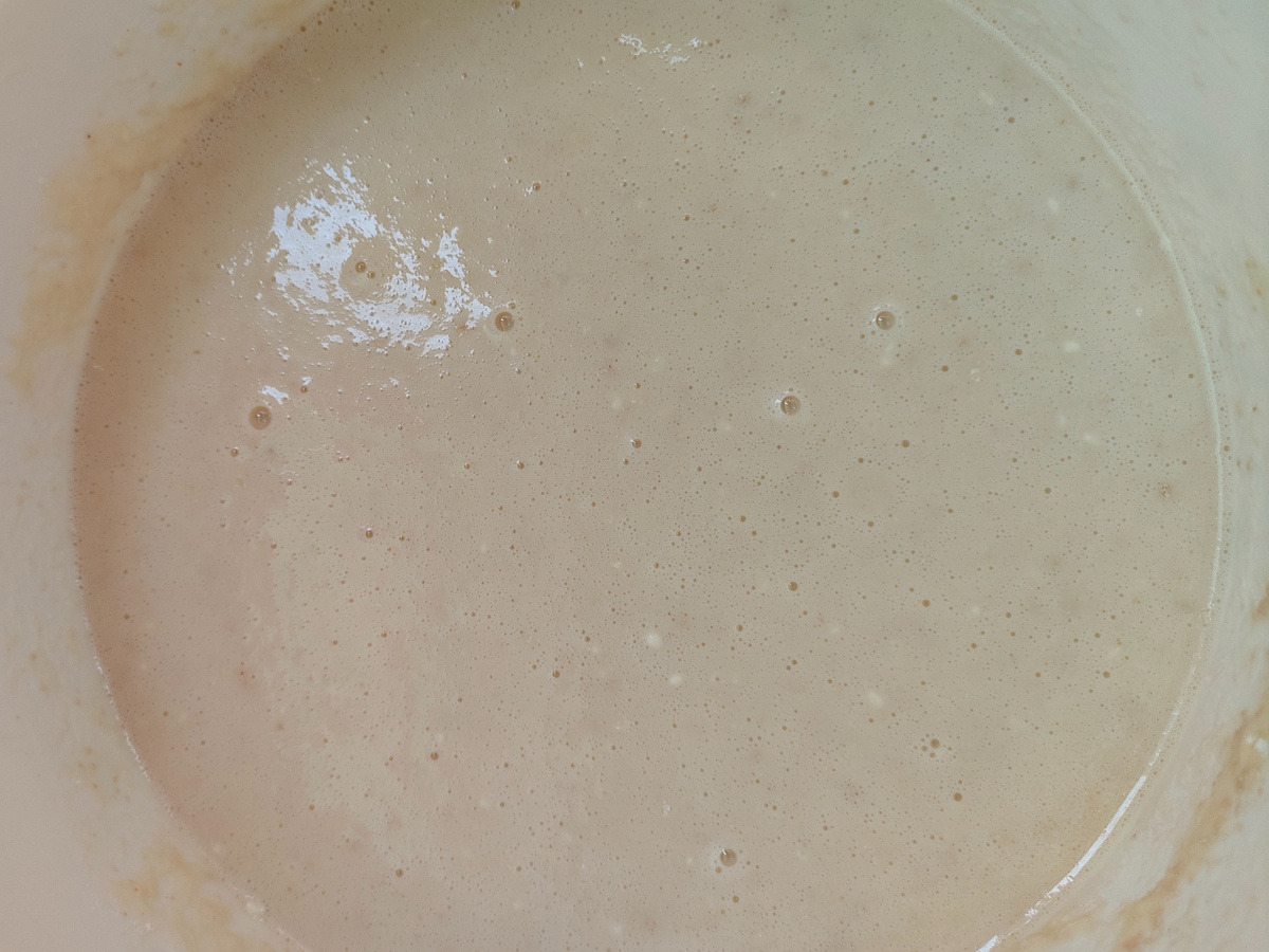 Итак, за исходник я взяла рецепт марокканских блинчиков...Но я была бы не я, если бы не внесла отсебятину. Что же получилось? В исходнике 500 мл воды заменила на молоко. Согрела до состояния самой высокой планки теплого. Добавила 1 чайную ложку соли, 2 столовых сахара, 2 столовых ложки растительного масла, 2 яйца (отсебятина), тщательно перемешала. Затем 10 столовых с горкой ложек манки (вообще то надо бы 16-17, но манка закончилась ☹️) и 8 столовых с горкой пшеничной муки (надо бы 4, но вспоминаем, что манки не хватило). Опять всё хорошенько перемешали. 2 чайные ложки сухих дрожжей, опять же перемешали и поставили в тепло. Должно получиться кремовое тесто консистенции жидкой сметаны как на фото. Как тесто поднимается, раза два надо "сбить", что бы оно опало и поднялось снова. На третий раз перемешивать не надо. Берём сковороду, накаляем, смазываем растительным маслом, выливаем тесто, разравниваем, "крутя" сковороду, как обычный блин. Ждём когда тесто "схватится". И дальше тоже отсебят
