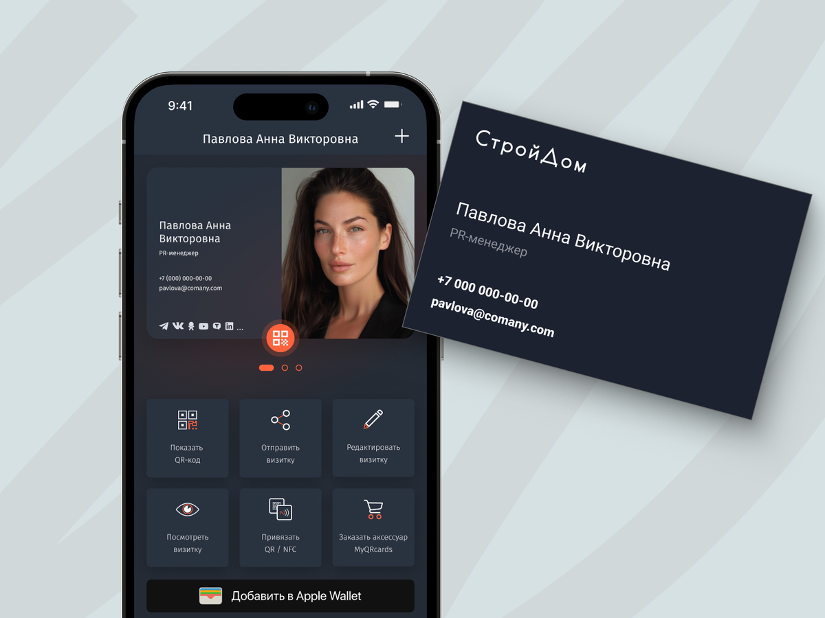 Приложение MyQRcards позволяет не только создавать электронные визитки и обмениваться ими, но и удобно оцифровывать бумажные визитки с помощью встроенного сканера и искусственного интеллекта. Это избавляет от необходимости вручную вводить контактные данные, что особенно важно на выставках и конференциях, когда надо быстро сохранить большое количество контактов! Убедитесь, что последняя версия приложения MyQRcards установлена на вашем смартфоне. Откройте приложение и войдите в свою учётную запись. Откройте раздел «Контакты» (меню внизу экрана). Нажмите «+» в нижней правой части экрана для добавления нового контакта. Далее выберите «Сканировать бумажную визитку» и наведите камеру таким образом, чтобы бумажная визитка оказалась в рамке. Убедитесь, что изображение чёткое, а текст хорошо читаем. Нажмите на оранжевую кнопку внизу экрана для сканирования. MyQRcards с помощью ИИ автоматически обработает изображение, извлечёт информацию и вставит ее в нужные поля. После распознавания вам буд