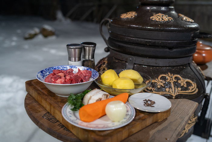 Томить жаркое в остывающем тандыре 2 часа при начальной температуре 200°С.