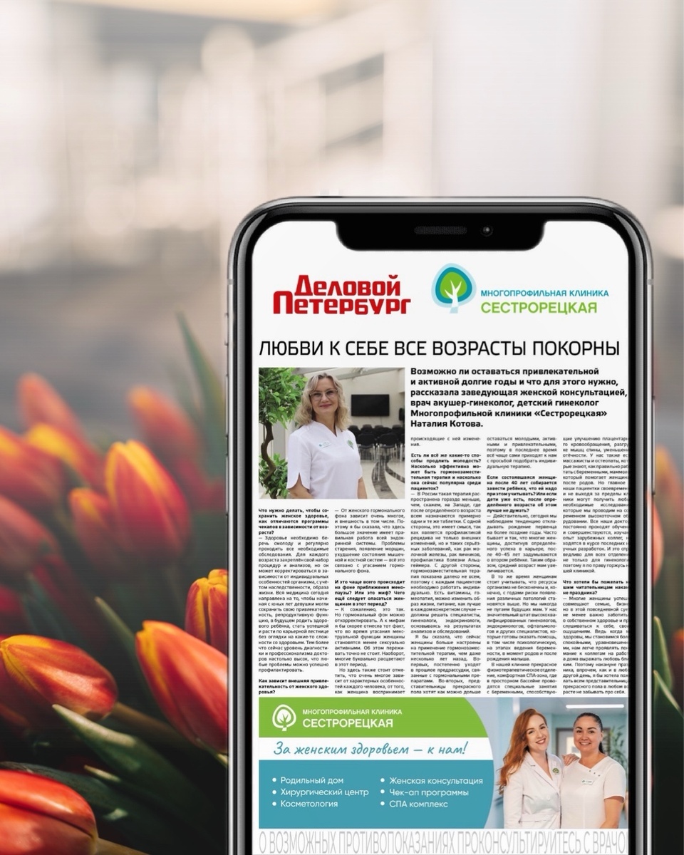 Накануне 8 марта в выпуске издания "Деловой Петербург" вышло интервью с заведующей Женской консультацией, врачом акушером-гинекологом Наталией Котовой.