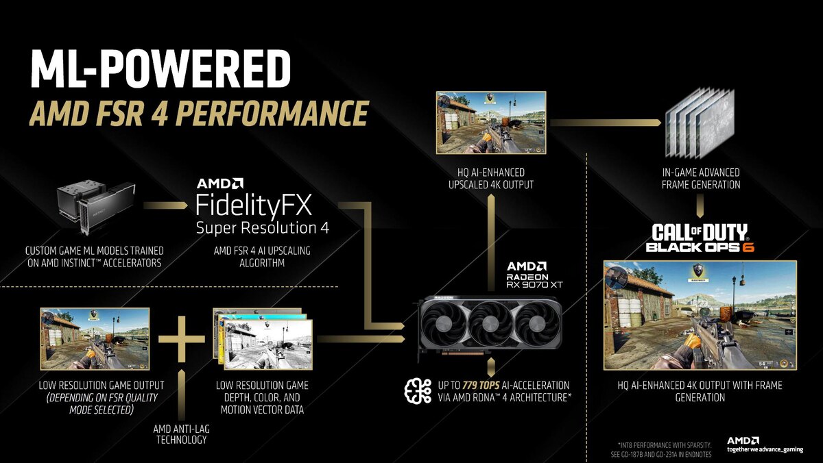 Разработка AMD FSR 4, новейшей версии технологии масштабирования AMD, велась совместно с компанией Sony. Об этом представители AMD сообщили на официальной странице компании в социально сети X (заблокирована в РФ), добавив, что это только начало: «FSR 4 выглядит фантастически! Мы в восторге от совместной разработки моделей апскейлера AMD FSR 4 с Sony Interactive Entertainment. Это только начало. Оставайтесь с нами, чтобы узнать, что будет дальше!». Источник изображения: AMD, Wccftech Совместный проект в области машинного обучения Amethyst был анонсирован Sony в конце 2024 года, напоминают журналисты ресурса Wccftech, которые успели обсудить данное событие с системным архитектором игровых консолей PlayStation 5 Марком Черни (). Специалист пояснил, что компании стремимся к совместной разработке новых производительных архитектур и стратегий обучения ИИ, которые можно адаптировать для различных комбинаций оборудования и сценариев: консолей и телевизоров, компьютеров и мониторов и т.п. По мн