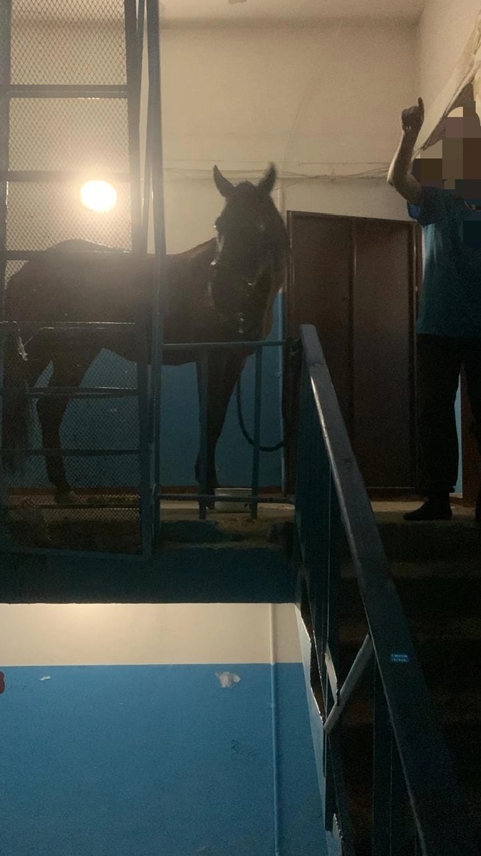 Все обошлось в итоге. Коня сотрудники полиции спустили. С девятого этажа!!! Борясь со страхом и преодолевая сопротивление обалдевшего коня. Помогали богатый русский язык и нестандартная ситуация. Ноги у коня целы остались. Его спасатели тоже! И это просто чудо!!!!