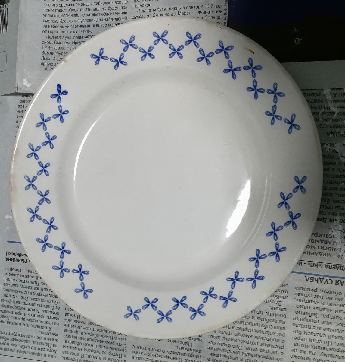 Были у меня припасены тарелки, им лет 30 в обед, тот самый случай, когда на стол уже не поставишь - местами пожелтели, местами сколоты, а выкинуть жалко.