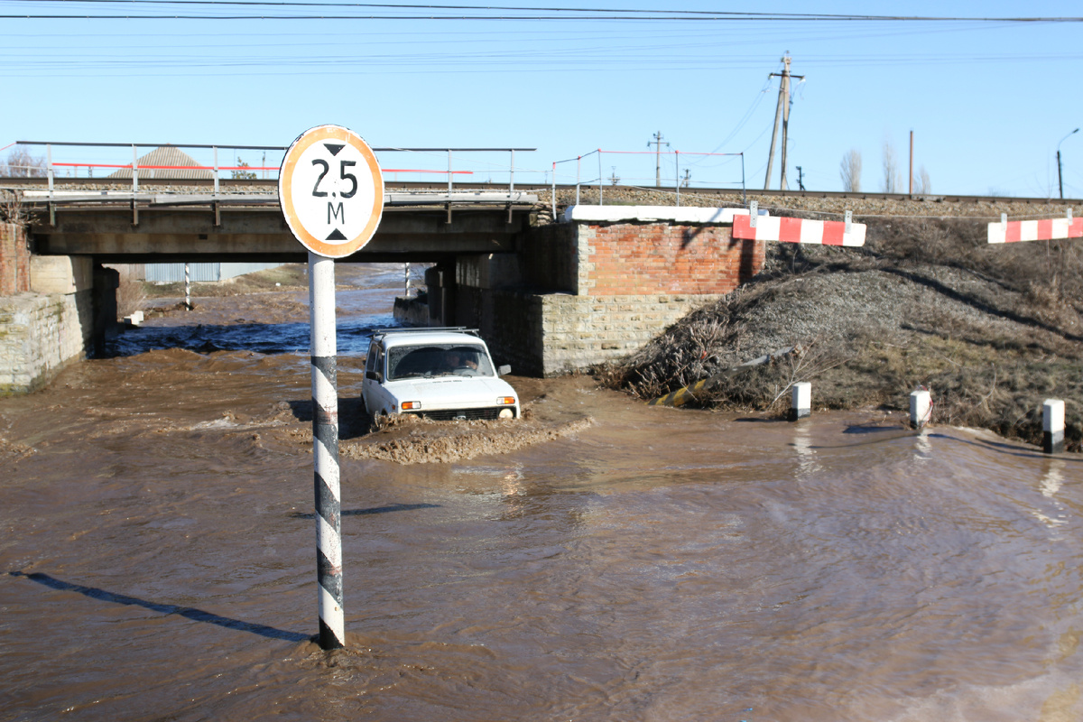 Погода сегодня, накануне женского праздника, порадовала резким потеплением до +10. Как следствие — талая вода хлынула по балкам. Самый зрелищный поток, как всегда, — в проезде под ж/д мостом. Кстати, этот мост и строился железнодорожниками именно для свободного стока талых вод. Это уже потом там проложили асфальт для автотранспорта. Сегодня на этом участке были установлены временные знаки, запрещающие проезд. Но желающих нарушить правила и преодолеть водное препятствие нашлось немало. Уровень воды в балках начался подниматься ближе к 12 часам дня. Уже около 11 часов в местах, где проходят водопропускные трубы (по ул. Строителей, Народной, Эртмана) были выставлены посты — согласно схеме , утверждённой в администрации города на комиссии по чрезвычайным ситуациям. Ещё с осени все балки были прочищены. Но вода несла немало веток, которые вытаскивали работники коммунальных и ресурсоснабжающих предприятий. По ул. Дзержинского, где балка поворачивает в луг, мешками с песком были выложены борд