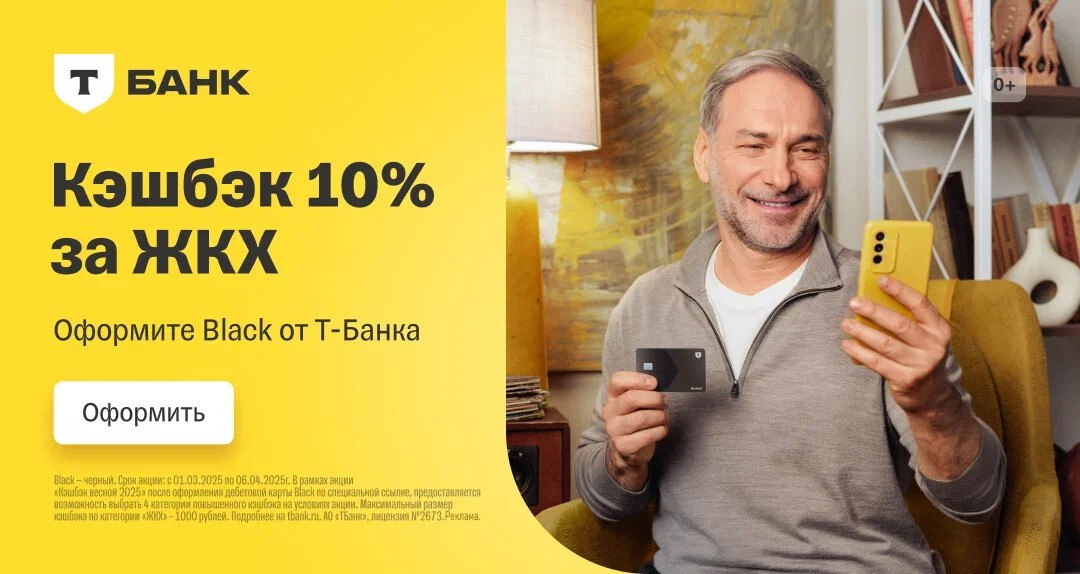 π³ Π’-ΠΠ°Π½ΠΊ Π·Π°ΠΏΡΡΡΠΈΠ» Π½ΠΎΠ²ΡΡ Π°ΠΊΡΠΈΡ ΠΏΠΎ ΠΊΠ°ΡΡΠ΅ Black β ΠΏΡΠΈ Π΅Π΅ ΠΎΡΠΎΡΠΌΠ»Π΅Π½ΠΈΠΈ ΠΏΠΎ ΡΡΠΎΠΉ ΡΡΡΠ»ΠΊΠ΅ Π΄ΠΎ 6 Π°ΠΏΡΠ΅Π»Ρ Π³Π°ΡΠ°Π½ΡΠΈΡΠΎΠ²Π°Π½Π½ΠΎ ΠΌΠΎΠΆΠ½ΠΎ Π²ΡΠ±ΡΠ°ΡΡ ΠΊΡΡΠ±ΡΠΊ 10% Π² ΠΊΠ°ΡΠ΅Π³ΠΎΡΠΈΡΡ