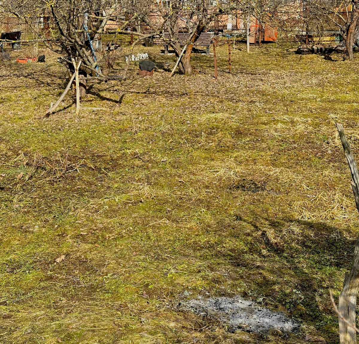 Ладно, пусть мой участок – не показатель: и поднимаем его постоянно, и дорожки в прошлом году практически все замостили, и вокруг все чем-нибудь да занято или завалено. Как обычно фотографирую соседскую лужайку. Вот она, красивая, чистая и уже чуть зеленеющая. Соль же в том, что она – самое низкое место, и обычно даже в мае тут стоит сплошная водная гладь.