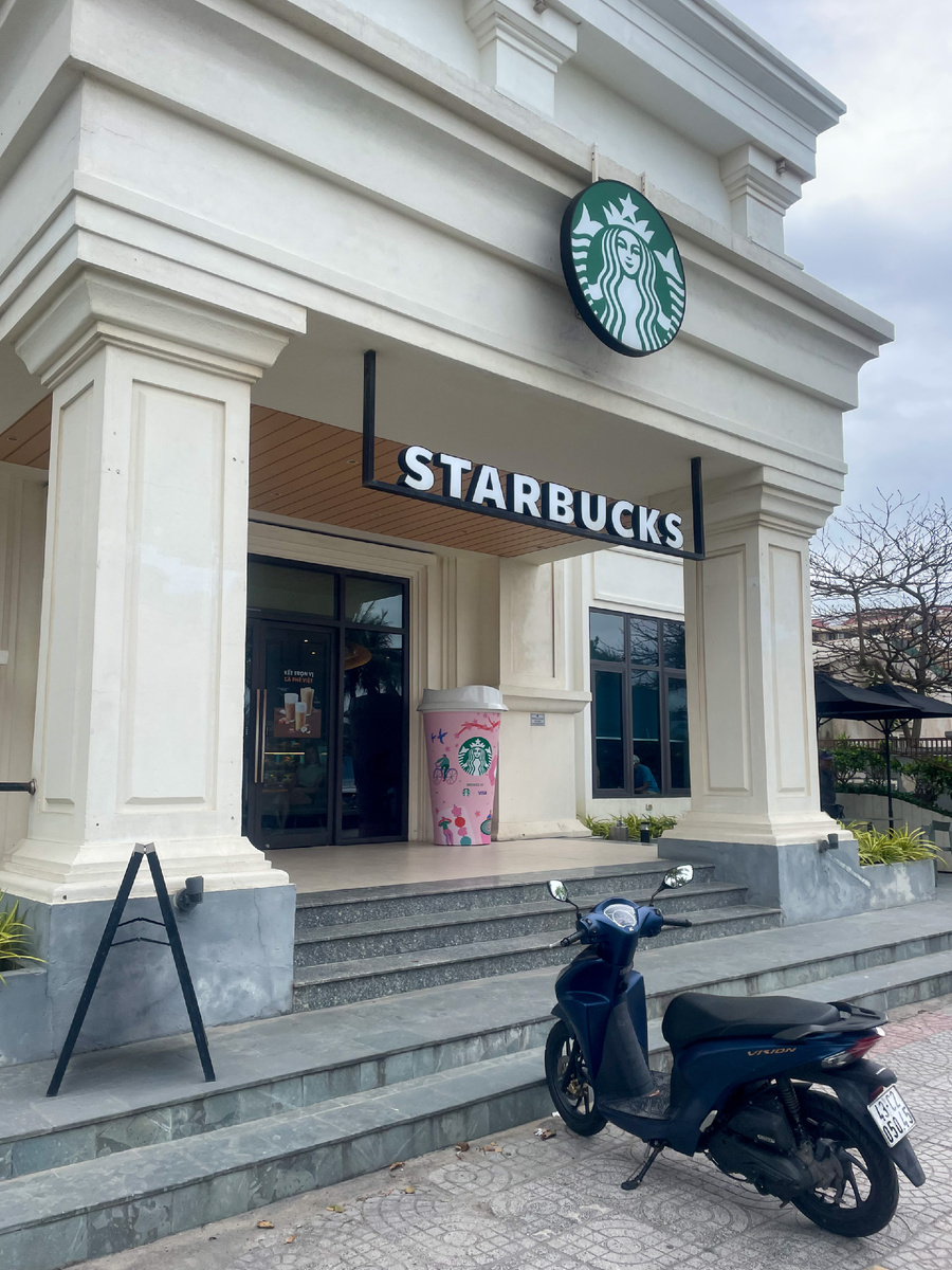 Повинуясь внезапному порыву, решила я давеча посидеть в Старбаксе. Ну а что, место стильное, пафосное, да и давненько не была, учитывая, что в России они переименовались и уже не то 😄 Честно скажу, никогда особо не любила Старбакс. Правда. Была там и в Москве, и в Питере, и в Штатах, но всегда считала эту кофейню супер переоценённой. Может, капучино и латте там хорошие, не знаю (а в США, кстати, мне там нравился только коктейль Vanilla Bean, уж не знаю, существует ли он сейчас), но я уже давно пью классический американо, а он мне в Старбаксе не нравится. Ну не нравится, и всё тут. И пьётся тяжелее, и послевкусие какое-то не очень приятное остаётся во рту. Атмосфера там хорошая, интерьер красивый, минималистичный - это всё прекрасно. Но вот то, что не самый лучший кофе стОит на порядок дороже других кофеен, - это я простить не могу. Вот и здесь так. Я пришла поработать, рассчитывая минимум часа на два. Взяла американо и слойку с шоколадом. Заплатила 124к донгов (почти 450 руб.) Для сра