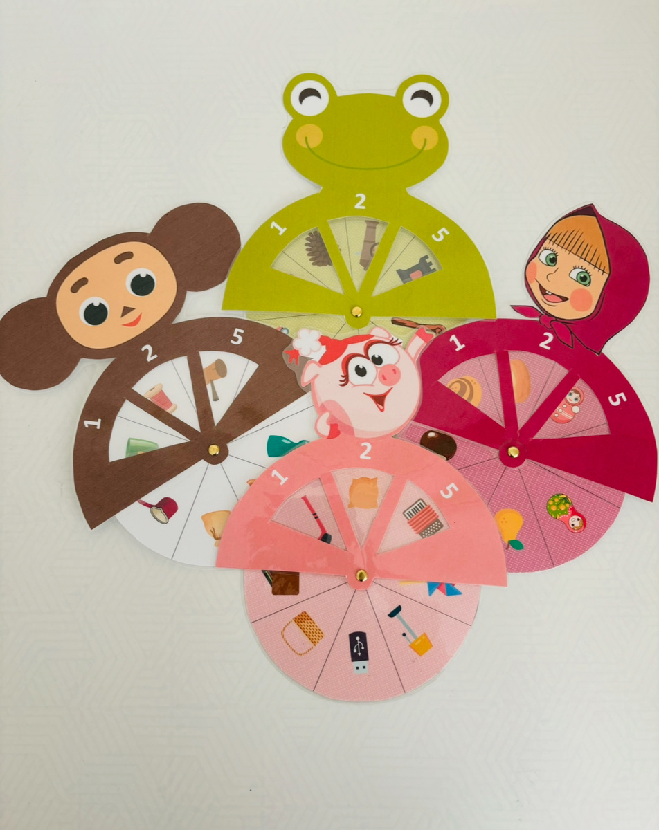 Игровое пособие «1-2-5» Игровое пособие поможет детям в игровой форме закрепить правильное произношение звука [Ш] в середине слова. Ребенок с интересом крутит диск, на котором представлены различные слова, и с радостью проговаривает их, отрабатывая правильное звукопроизношение. В пособии 4 уровня для произношения: - проговариваем слова в окошке; - называем персонажа и что у него есть (У Нюши лукошко…) - составляем короткие предложения ( Чебурашка несет мешок.) - согласовываем числительные с существительными (одна ватрушка, две ватрушки, пять ватрушек). Игра не только способствует развитию речи, но и делает процесс обучения веселым и увлекательным. Яркое и красочное пособие привлекает внимание ребенка, а простота использования позволяет ему самостоятельно включаться в процесс. Идеально для родителей, педагогов и логопедов, которые ищут эффективные и интересные методы работы с детьми. Пользуйтесь. Успехов Вам!