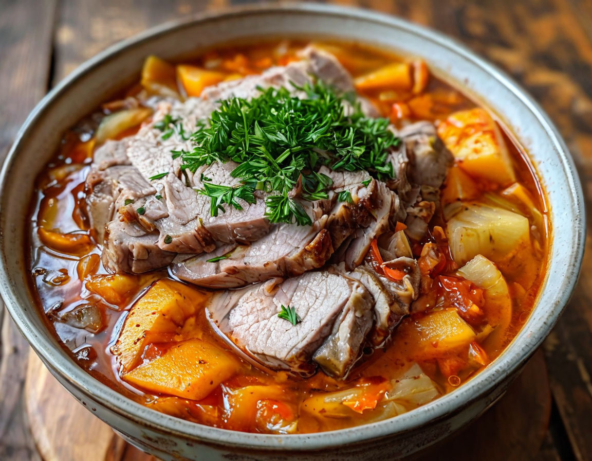 Щи из свежей капусты со свининой