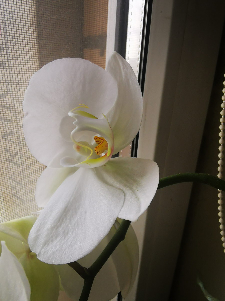 Моя белоснежная орхидея. Многие говорят, что они цветут только в магазине, а потом уже нет. Но у меня, тьфу, тьфу, тьфу, цветёт. Кстати, отличный подарок на 8 марта. И простоит дольше тюльпанов и потом будет радовать.