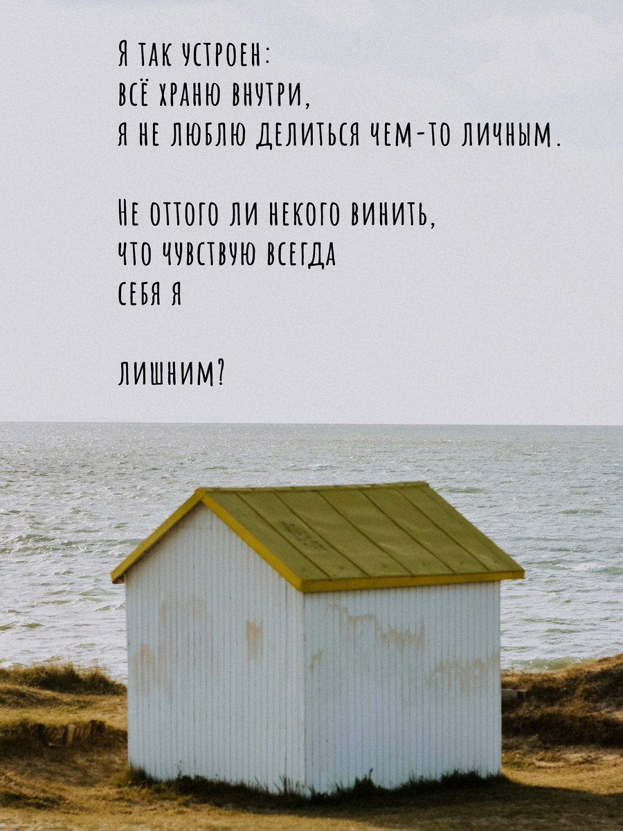 Я ухожу куда-то вглубь себя, когда вдруг кажется, что мир настроен против меня, который нифига, как думается, счастья не достоин. Я запираюсь ото всех на сто замков, когда тревога поглощает мою душу. Я просто-напросто морально не готов сливать свой негатив, чтоб кто-то слушал. Я так устроен: всё храню внутри, я не люблю делиться чем-то личным. Не оттого ли некого винить, что чувствую всегда себя я лишним? Малёнкина Эн 08.09.2021 #цитаты #цитата #мысли #поэзия #литература #МалёнкинаЭн #стихи
