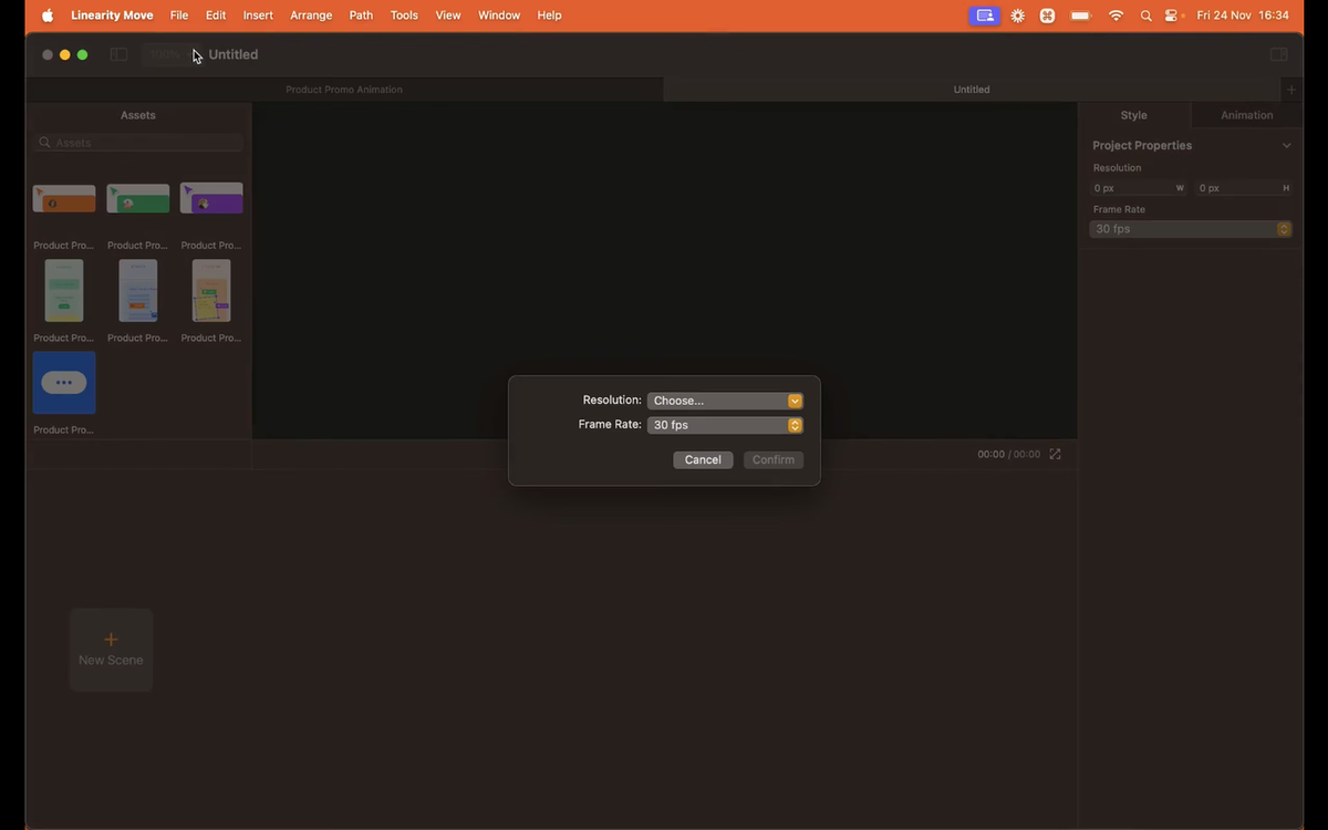 Видео – мощный инструмент маркетинга, но когда лучше его задействовать? Например, при запуске нового продукта или услуги. Это отличный способ показать преимущества и возможности, которые могут заинтересовать потенциальных клиентов. Давайте разберёмся, как сделать такое видео. Открываем Linearity Move и создаём новый проект. Для начала выбираем квадратный формат – он универсален и подходит для соцсетей. Частота кадров – 30fps. Это стандарт, который обеспечит плавность анимации. После настройки нажимаем "Подтвердить" и получаем чистый холст. Добавляем новый Сценарий (Scene) в нижнем левом углу экрана. Затем нажимаем Импорт (Import). В Панели импорта выбираем Артборды – это отдельные сцены будущего видео. Выбираем файлы с белым фоном, зажав Shift, и перетаскиваем их на линию сборки сцен (Scene Builder). Это первая сцена. Теперь делаем то же самое с артбордами на синем фоне – это вторая сцена. После расстановки сцен жмём Импорт (Import) и нажимаем Предпросмотр (Preview), чтобы увидеть аним