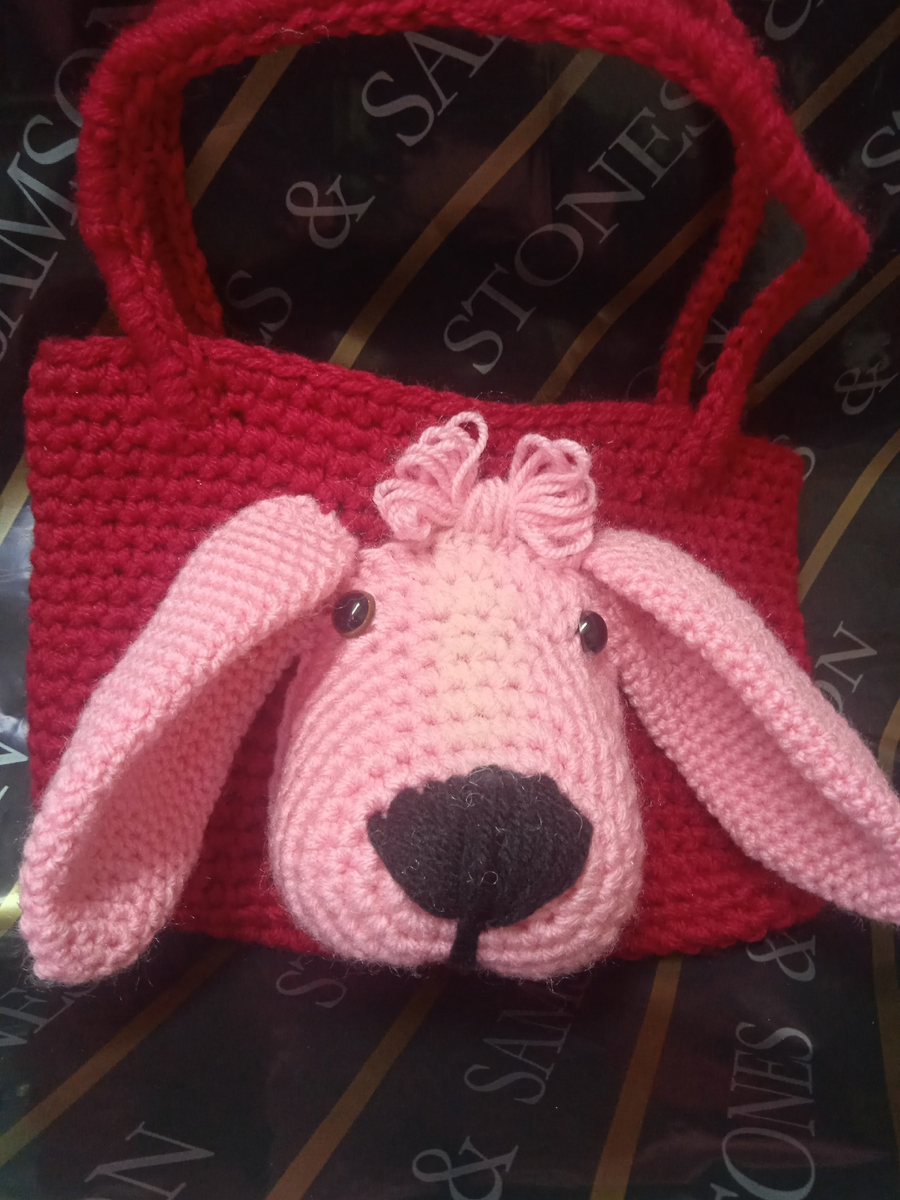 Здравствуйте друзья Верно люди говорят: поспешишь и людей насмешишь. Вот и я поспешила, а как исправить теперь ошибку не знаю. Одна знакомая попросила меня связать для ребенка сумочку. Я все сделала как она просила. Ребенок был счастлив и мать довольна , ведь сумочка предназначалась на день рождения (ДР 8 марта). И вот он, подарок с косяком. И что теперь делать? говорить, чтоб обратно вернули или оставить так как есть? Типа это авторский стиль. Сумочка вязана пряжей новинка детский каприз в две нити, крючком 2,5. Ручка для сумочки вяжется на бурдоне. Для сумочки я набрала около 30 воздушных петель, провязав косичку с двух сторон на подобии овала. В высоту я вязала столбики без накида 15 см. Отдельно связала ушки и мордочку. Вяжутся в одну нить, Для ушек: 1) КА6 в/п 2)ПР, 1СБ)*3 Делаем прибивки до тех пор пока в секторе не будет 8 петель. Долее шестнадцать рядов вяжем ровно, без каких либо изменений. Далее делим столбики на шесть секторов и начинаем убавлять. 1)2вм, 3сб)*6 раз