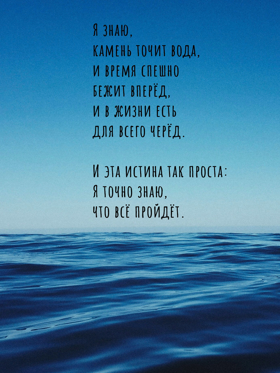 Я точно знаю, что всё пройдёт: и боль съедающая внутри, и отголоски былой любви. Их, словно ветер песок несёт, утащит время куда-то вдаль, поместит в тайном углу души. Всё неизменно. Такая жизнь. Я принимаю, и мне не жаль. Метаморфозы мне сердце жгут, ведь нас пугает порою покой: остаться нужно с самим собой, чтоб личный всё ж проложить маршрут. Но знаю, камень точит вода, и время спешно бежит вперёд, и в жизни есть для всего черёд. И эта истина так проста: Я точно знаю, что всё пройдёт. Малёнкина Эн 26.12.2024 #цитаты #мысли #литература #поэзия #стихи #жизнь #МалёнкинаЭн