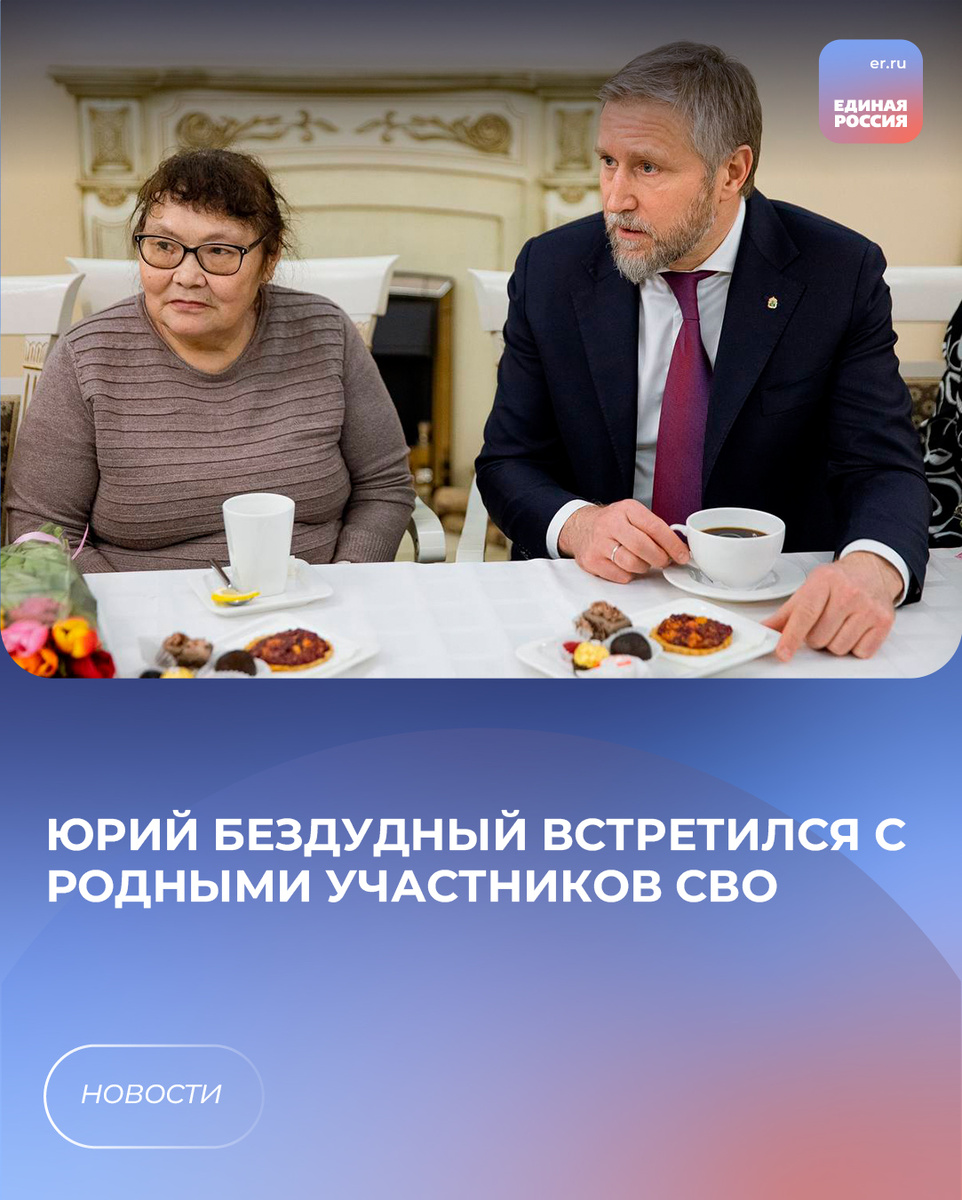 В преддверии 8 марта губернатор НАО Юрий Бездудный встретился с родными участников СВО