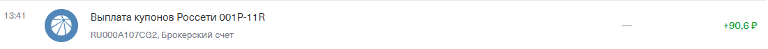 Первая "Россети 001P-11R". За 5 единиц облигаций получено купонов 90,6 рублей.