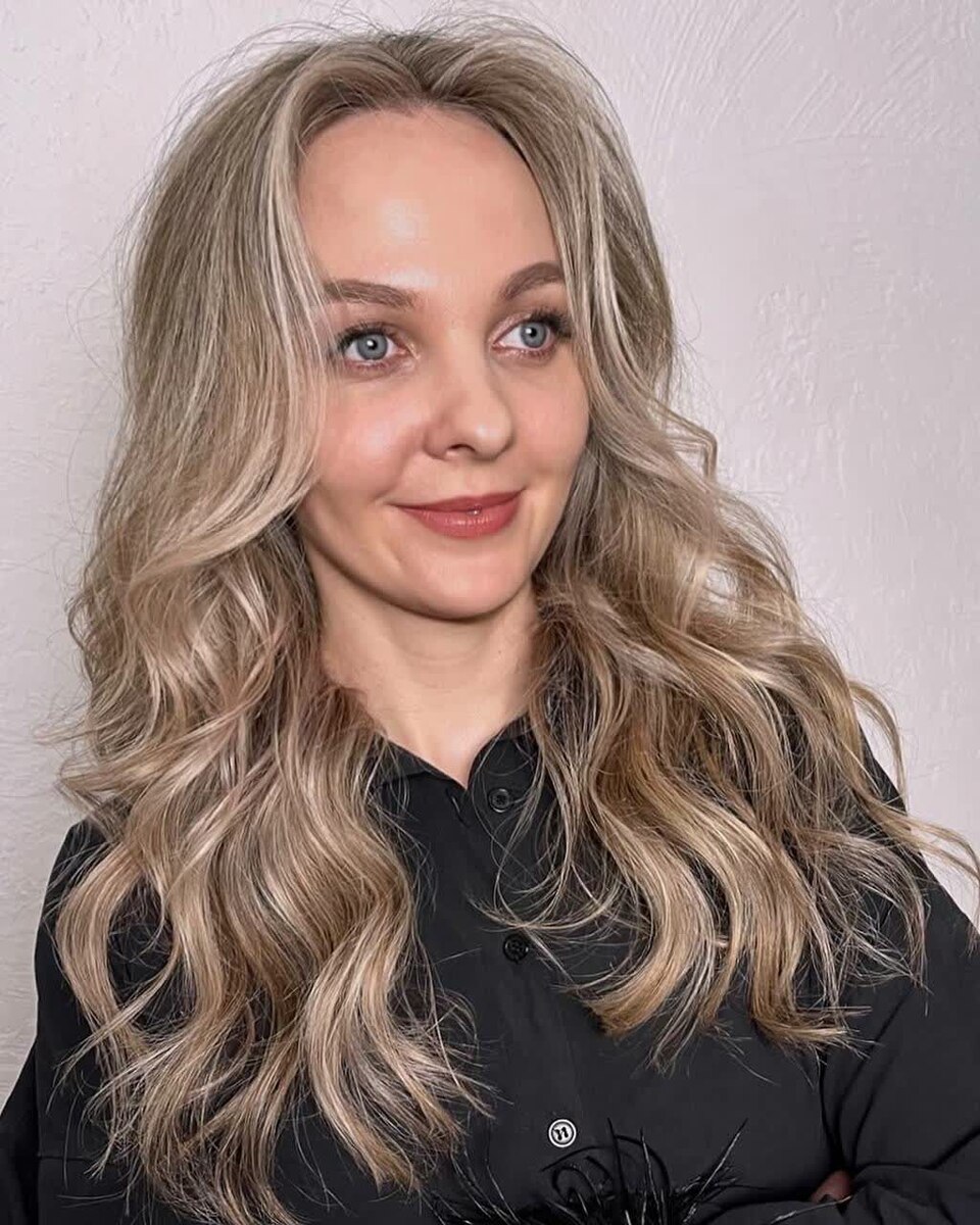 Умное окрашивание, которое сэкономит деньги и время. Несомненно- это текстурный блонд #blondetexture Выглядит обьемно и фактурно. Эффект многогранности цвета на полотне создается в результате комбинаций методов миксования оттенков и полутонов. Очень красиво выглядит на волосах любой длины. Такое окрашивание не требует коррекции до полугода. Мягко и деликатно отрастает, не оставив взорваного и перманентного следа. Текстурный блонд #blondetexture эффективный инструмент для маскировки седины. В сочетании с базовым или исходным тоном, образуется единый цвет. Создание каждого текстурного рельефа уникально по цветовым сочетаниям, контрасту, балансу. А так же, направлению между нейтральным, теплым и холодным ньюансом. 📲 Записаться онлайн: What’sApp ☎️ Тел: +7 (916)229-39-89 «ValentinaStyle» #окрашиваниеволос #салонкрасоты #ValentinaStyle #профессиональныйуход #шитьеседины 8(925)055-33-24 «VS studio»