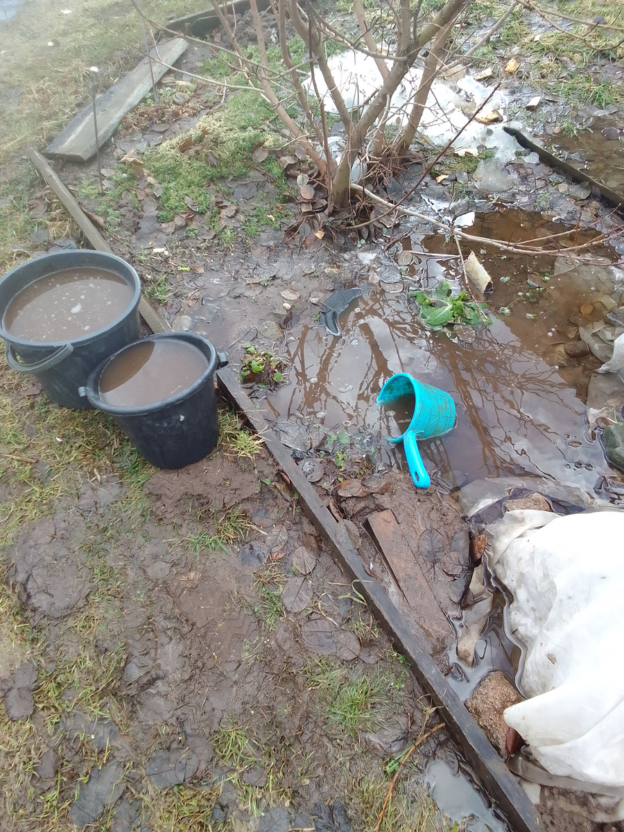 Примчалась на Усад. А там вода. Не разлив поймы, конечно, но меня розы волнуют. Как раз в розарии уровень воды до 5 см. Муж на мои волнения отмахнулся. Он переживал за "водоем" около дома, в том месте, где установлена газовая труба. Песчаная почва с осени просела и труба стоит по пояс в воде. Удивляться нечему. Накануне утром выпал снег, днем он дружно растаял, вечером зарядил дождь. Лил часов пять. Сегодня вовсю солнце сияет. Зеиля оттаивает. Никаких важных дел - будем осушаться. Я принялась за розарий. Сначала хотела канавки отводные прокопать. Но.под водой оказался лед. Ринулась было вычерпывать лужи. Унесла ведер 30. Уровень немного спал. Но поняла, что пустая и глупая затея. Тоже самое, что ковшом осушать реку. Срочно надо, решила. помолиться, чтобы ночью подморозило. Влага вымерзнет. И полный порядок. Другого выхода не вижу. Но грязь непролазная. Я бросил