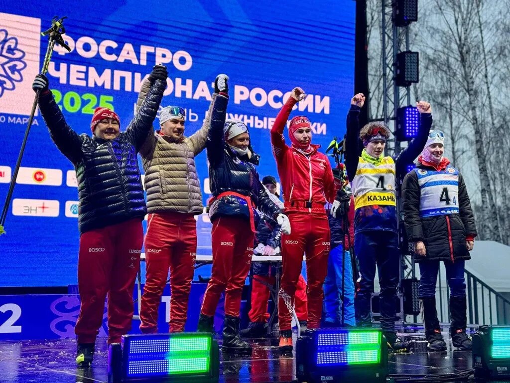 Идея прекрасная - организовать вечернюю лыжную гонку с привлечением мастеров лыжного спорта, Олимпийских чемпионов, ветеранов, тренеров сборной и детей из местных ДЮСШ. Радость и счастье для детей! И гонку провели в честь знаменательной даты в истории России - 80 летия Великой Победы! Концепция забега заключалась в объединении всех причастных к лыжным гонкам, поэтому команда была представлена шестью спортсменами, среди которых были действующие члены сборной России, юниоры из спортивных школ Татарстана, а также тренеры и сервисмены республиканской и национальной сборных. Но все опять пошло наперекосяк! Не буду останавливаться на деталях и командах эстафеты, команды состояли из 6 человек и каждый бежал по 1,9 км. В итоге победила команда главы ФЛГР Елены Вяльбе! Навязать конкуренцию Елене Вяльбе не смог никто — она финишировала первой с большим отрывом, а итоговый результат победителей составил 25 минут 25,6 секунды. В состав сильнейшей команды помимо Елены Вяльбе вошли Татьяна Сорина,