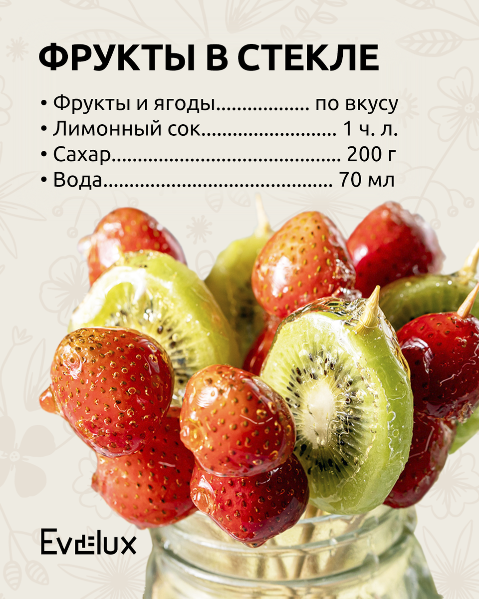 8 Марта — отличный повод порадовать свою любимую и сделать её утро особенным. Начните его с изысканного корейского десерта — фруктов в стекле. Приготовить это лакомство совсем не сложно, главное — следуйте нашему простому рецепту на карточках! Для приготовления вам понадобится варочная поверхность Evelux. Подобрать идеальную для вас модель вы можете по ссылке: https://clck.ru/3GTBap