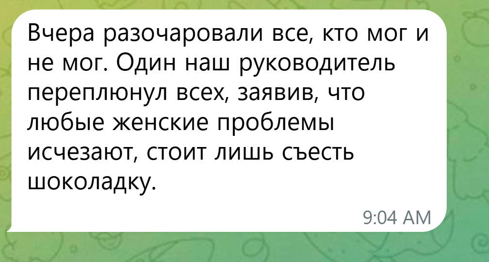9 марта, офис. Коллега явно в плохом настроении. Спрашиваю, что случилось. Ответ: