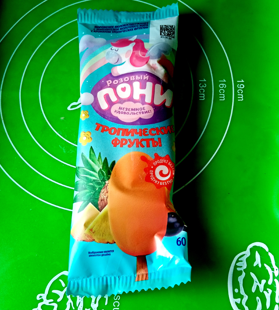 ВЕС 60 грамм. ИЗГОТОВИТЕЛЬ "Волга Айс", город Чебоксары, Чувашия. ТМ "Розовый Пони". ЦЕНА в магазине "Победа" 19,90. Мороженое молокосодержащее, с заменителем молочного жира и ароматом тропических фруктов. Но напечатано очень мелко. Массовая доля жира 10,0%. Растительного жира 5,0% в молокосодержащей части продукта. ЗАМЕНИТЕЛИ МОЛОЧНОГО ЖИРА Заменители молочного жира не содержат холестерина, являются источником витаминов и содержат ненасыщенные жирные кислоты, которые способствуют выведению холестерина из организма. Такое мороженое менее калорийно и легче усваивается. Эскимо на палочке красивого персикового цвета со вкусом, который действительно похож на тропические фрукты. Очень ароматное и вкусное мороженое. Распаковка ниже: Мой канал на Ютубе https://www.youtube.com/channel/UCxR-cVRpbp0ZCwUI4Sro3aA ВСЕ ФОТО АВТОРА ЕЩЕ СТАТЬИ о мороженом НА КАНАЛЕ Мисс Обзоровна: