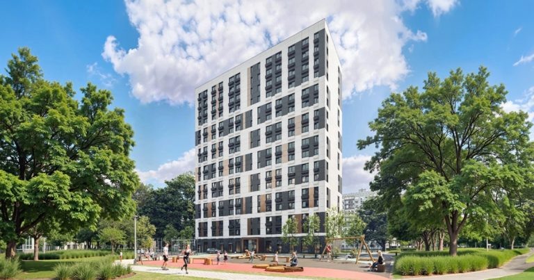 Это проект 17-этажного многоквартирного дома с использованием стального каркаса. Дизайн домов не удивляет — они почти ничем не отличаются от тех, что появляются по программе реновации. Новая разработка Минстроя нацелена на практичность, и предполагается, что технология быстрого строительства на стальном каркасе позволит сократить сроки возведения на 30%.