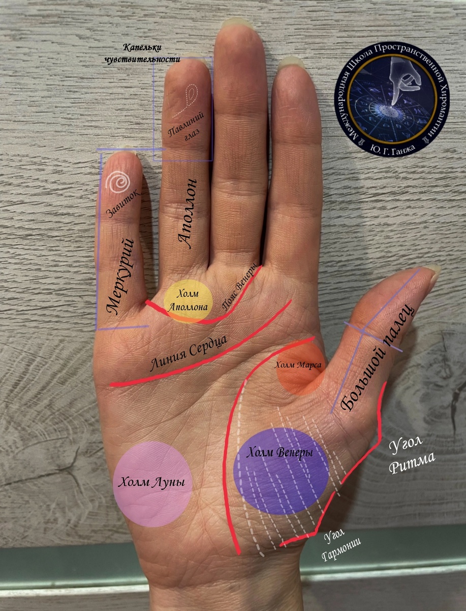 🌹А вот в сочетании с углом Гармонии о том, что перед нами еще и меломан, которая может иметь музыкальные таланты, особенно в случае соответствующего папиллярного узора на плато руки и подушечках пальцев.