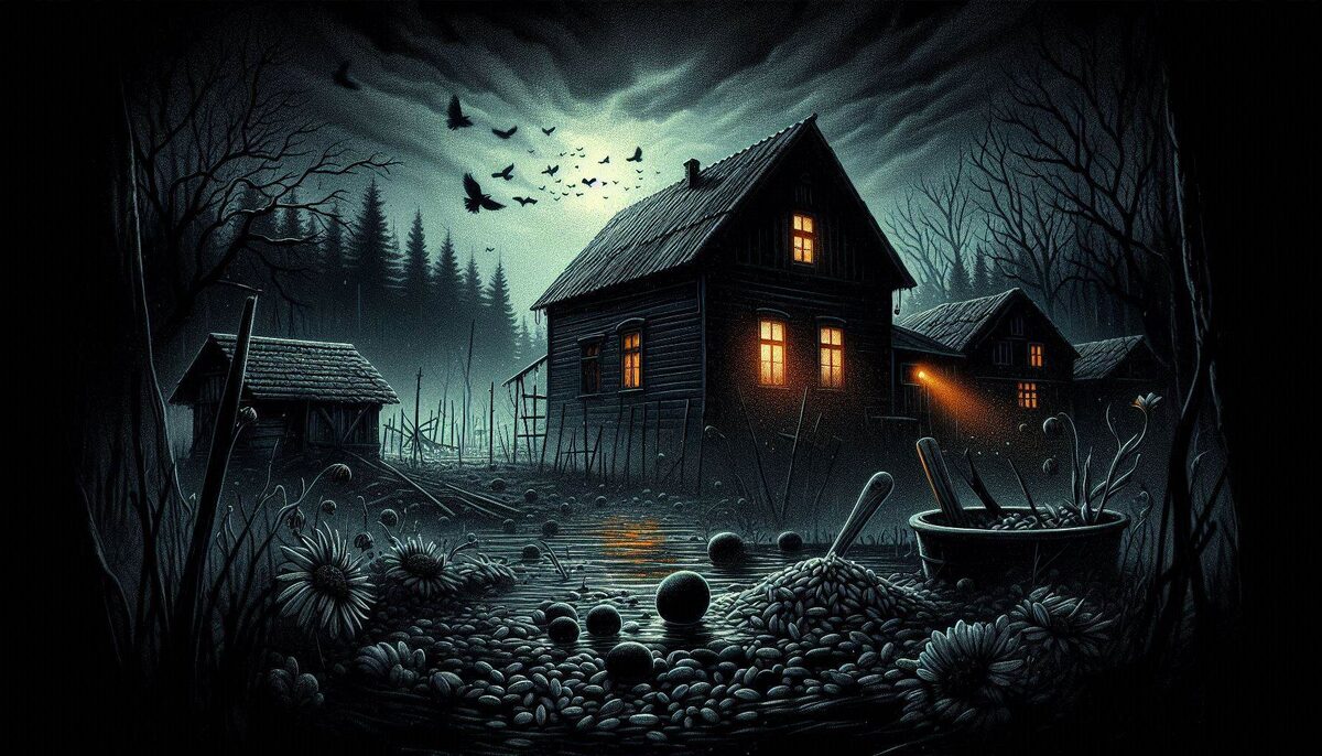 Я помчался обратно к курятнику, с ружьём наготове, но больше не слышал чавканья. Вместо этого я нашёл сообщение, написанное куриной кровью на полу курятника: «Пока смерть не разлучит нас».