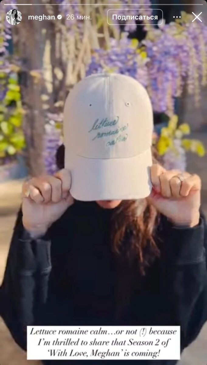 Воровато радуясь под глицином (зачеркнуто) глицинией, Меган Маркл объявляет о втором сезоне своего провального шоу. Да, конечно, человечество уже безошибочно узнает её по подбородку с винирами и стремному силуэту с угловатыми движениями истинной аристократки. Зачем тебе второй сезон, Меган? По тебе и так уже не промахнешься в толпе.