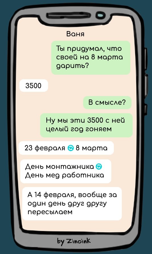 Вот и наступило 8 марта! День, когда женщины плескаются в цветах и презентах, а мужчины – в мыле, покупая подарки, бронируя столики в ресторане и выбирая букеты. А если взять во внимание, что многие мужчины любят делать всё это в последний момент – задаешься вопросом, как мужчины вообще выживают до следующего дня). Сегодня я собрал 7 смешных переписок, в которых мужчины пытаются выжить в суматохе на 8 марта. Поздравляю милых девушек и желаю терпения парням). Пока мужчины ломают голову, что дарить своим дамам на 8 марта, человечество давно уже придумало решение проблемы – деньги в конверте и сертификаты на покупки). Герой следующей переписки явно пользуется этим лайфхаком. Раньше букетик цветов был приятным дополнением к основному подарку. А теперь – это полноценный презент, на которой ещё нужно накопить! О безумных ценах на цветы – следующая переписка. Многие женщины любят сюрпризы, когда до последнего неизвестно, чем тебя порадует вторая половинка. Но иногда лучше поинтересоваться у ж