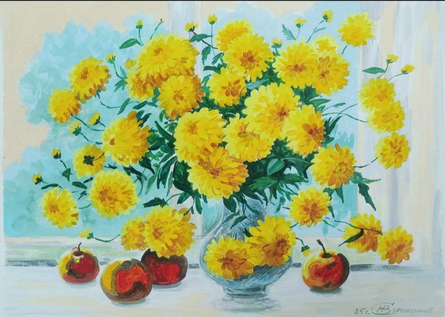 В этой группе я преподаю уже 2 года подряд и мы прошли уже алфавит от А до Я названия цветов уж несколько раз. Сейчас вы увидите результаты работы последнего месяца наших участников которым всем за 55+, на минуточку😉 и они далеко не профессионалы, но любители с большой буквы Л и самое главное в их работах чувствуется Любовь. Выбор картины или фото мы находим на полях интернета, как и в этот раз выбор пал на Золотые шары Но рисовали последние месяцы мы не только их Рисуем акварелью в стиле ботанической живописи А так же гуашью Бывает, что совмещаем цветные карандаши с акварелью Посмотрите какие прекрасные картины получились у наших участников. Анютины глазки рисуем, фиалки, тюльпаны и ромашки. Цветы всегда прекрасны А теперь я хочу поздравить женщин всего человечества с праздником 8 марта. Желаю Вам оставаться всегда красивыми, женственными, деловыми! Пускай Вас всех окружают ,любящие сердца, достойные мужчины!) Здоровья, улыбок, нежности! Весеннего солнышка! Хорошего нас
