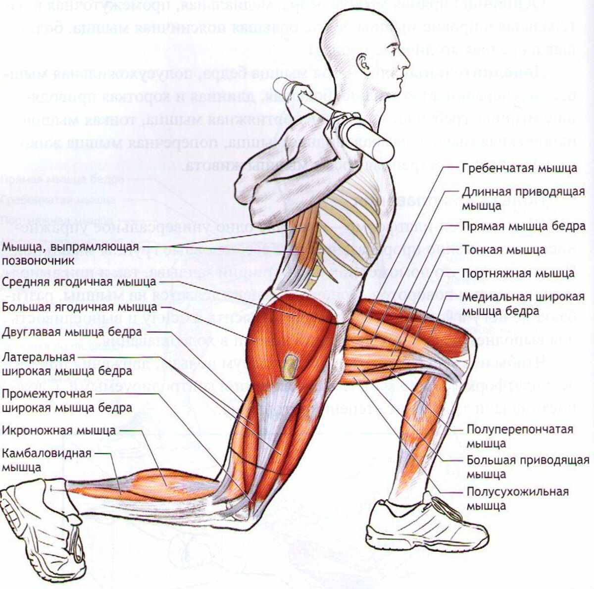 Стоит упомянуть что выпады можно делать на месте, в движение, со штангой на плечах, со штангой перед собой, с гантелями и гирями.