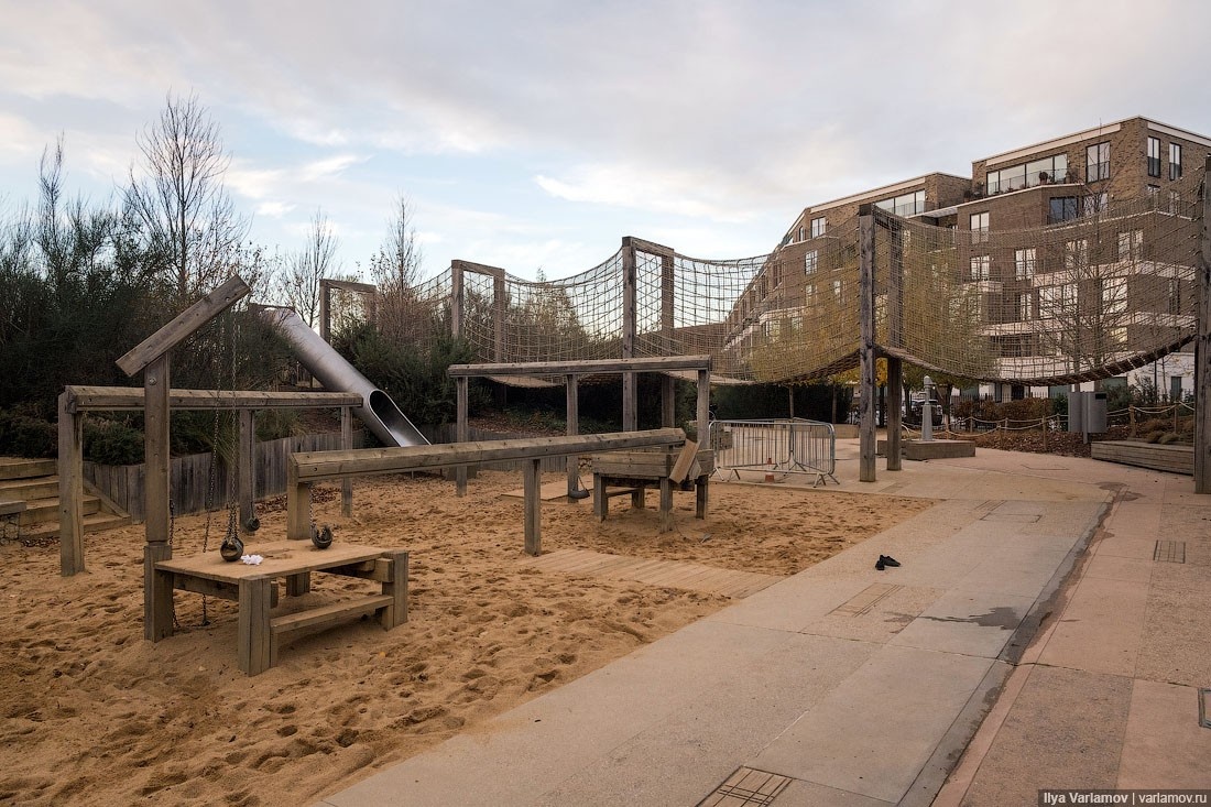 Сегодня вернёмся к Олимпийскому парку королевы Елизаветы в Лондоне. К Играм-2012 там построили не только спортивные объекты, но и одну из самых крутых детских площадок из всех, что я когда-либо видел. Она называется Tumbling Bay и находится в северной части парка, как раз рядом с новыми кварталами, о которых я вчера рассказал.