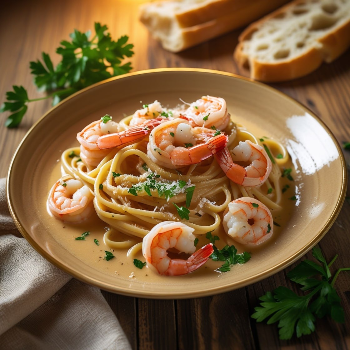 Изысканный ужин для всей семьи: паста с креветками в сливочном соусе 🍝🦐
