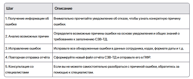 - Уведомление об отказе: В ответ на отправленный отчёт СЗВ-ТД вы должны получить уведомление об отказе с указанием кода ошибки 30. Важно внимательно прочитать это уведомление, так как в нём будет содержаться более подробная информация о причине отказа.