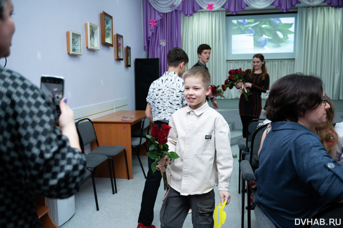 В детском доме всегда рады гостям, поэтому положительные эмоции получили и мы. Для нас прекрасные воспитанницы подготовили творческие номера. Девочки пели, танцевали и поздравляли присутствующих с праздником весны. После концерта нам организовали экскурсию по детскому дому, где воспитывается больше шестидесяти ребят. Часть из них живет в здании на Ленина, а остальные — в хабаровском интернате на базе КАФ. Здесь к каждому ребенку относятся с заботой и вниманием, не забывая о его воспитании. При учреждении имеются музыкальные и танцевальные классы, духовой оркестр, шахматный клуб и столярная мастерская. В ней дети учатся ручному труду, создавая различные изделия.