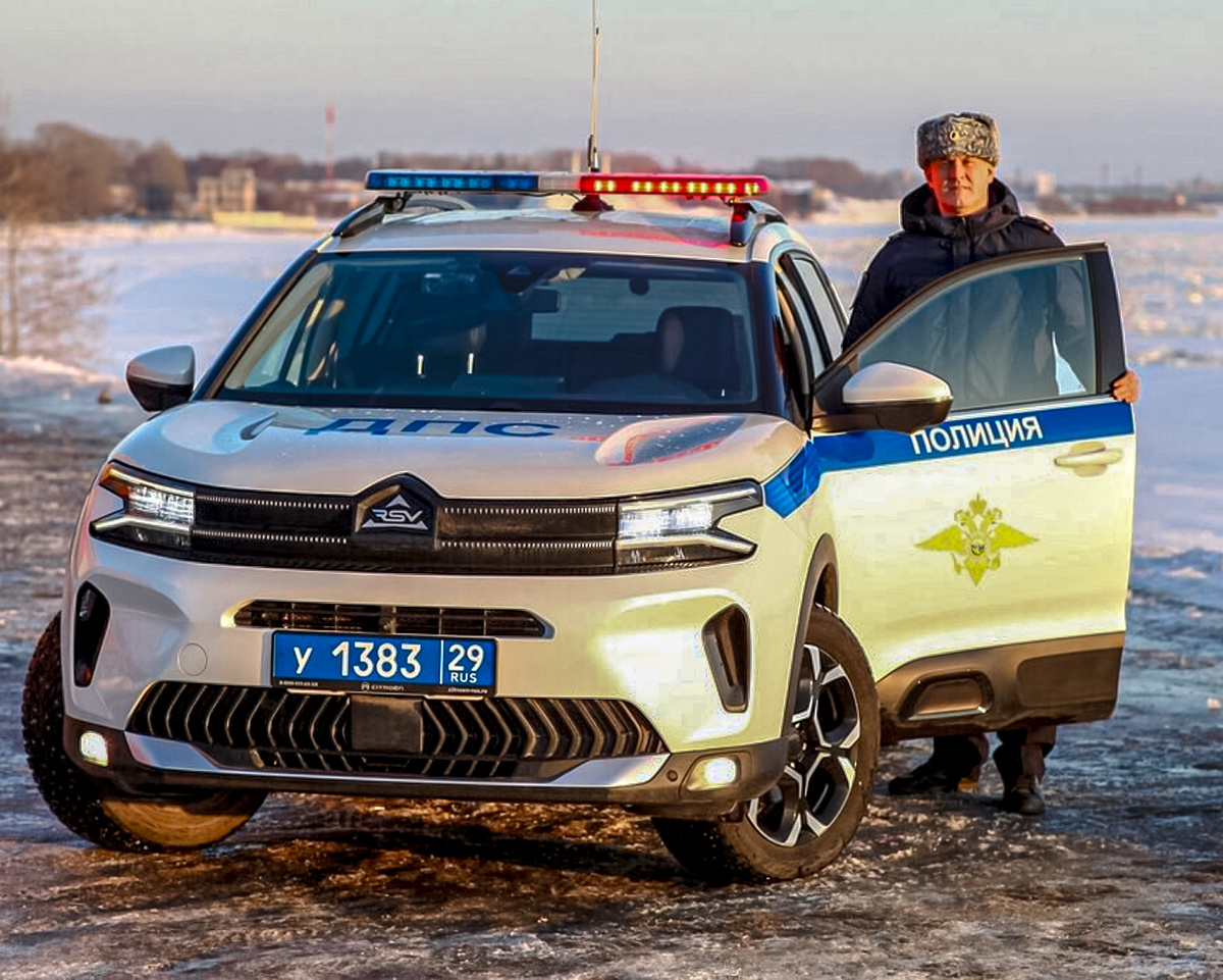 Подтверждением того, что Rosva — это, мягко говоря, «переосмысленный» Citroen C5 Aircross, служат фотографии из паблика ГИБДД Архангельской области в VK. На них запечатлены патрульные «Ситроены», у которых логотип «двойного шеврона» на решётке радиатора заменён на символику RSV. Элегантное решение!