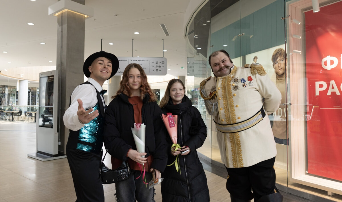 Актеры театра драмы в преддверии Международного женского дня поздравляли в ТЦ «Броско Молл» девушек. Они дарили цветы, говорили комплименты, а также звали всех посетить представления. Получилась очень милая и красивая акция. Удивляли актеры не только своими костюмами, но и неповторимой харизмой, поднимая настроение и взрослых женщин, и самых юных посетительниц ТЦ. Акция получила самые добрые отзывы от посетительниц, которым было просто приятно почувствовать внимание со стороны актеров театра. Напомним, что ранее с праздником весны и красоты поздравили воспитанниц детского дома корреспонденты сайта и салон цветов «8 Марта». Для них мы доставили букеты, а дарить красные розы девочкам доверили юношам.