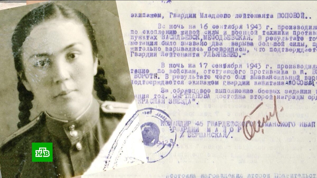 [ Смотреть видео на сайте НТВ ] В Минобороны рассказали о женском лице Победы. Военное ведомство опубликовало архивные документы о подвигах женщин, которые на фронтах Великой Отечественной войны вместе с мужчинами приближали разгром врага. В историческом разделе сайта Минобороны размещены наградные листы, описания подвигов, личные характеристики и фотографии героинь. С 1941-го по 1945 гг. на военную службу в советскую армию были призваны полмиллиона женщин. Одни служили снайперами, разведчиками, связистками и медиками. Другие обеспечивали бесперебойную работу тыла. За героизм, проявленный на полях сражений, 150 тысяч женщин были награждены орденами и медалями. Среди них Магуба Сыртланова — легендарная летчица, заместитель командира эскадрильи 46-го гвардейского ночного бомбардировочного Таманского авиаполка, подразделения, участниц которого немцы из страха называли «ночными ведьмами». Магуба совершила почти 800 боевых вылетов, сбросив на позиции фашистов более 40 тонн бомб, и была удос