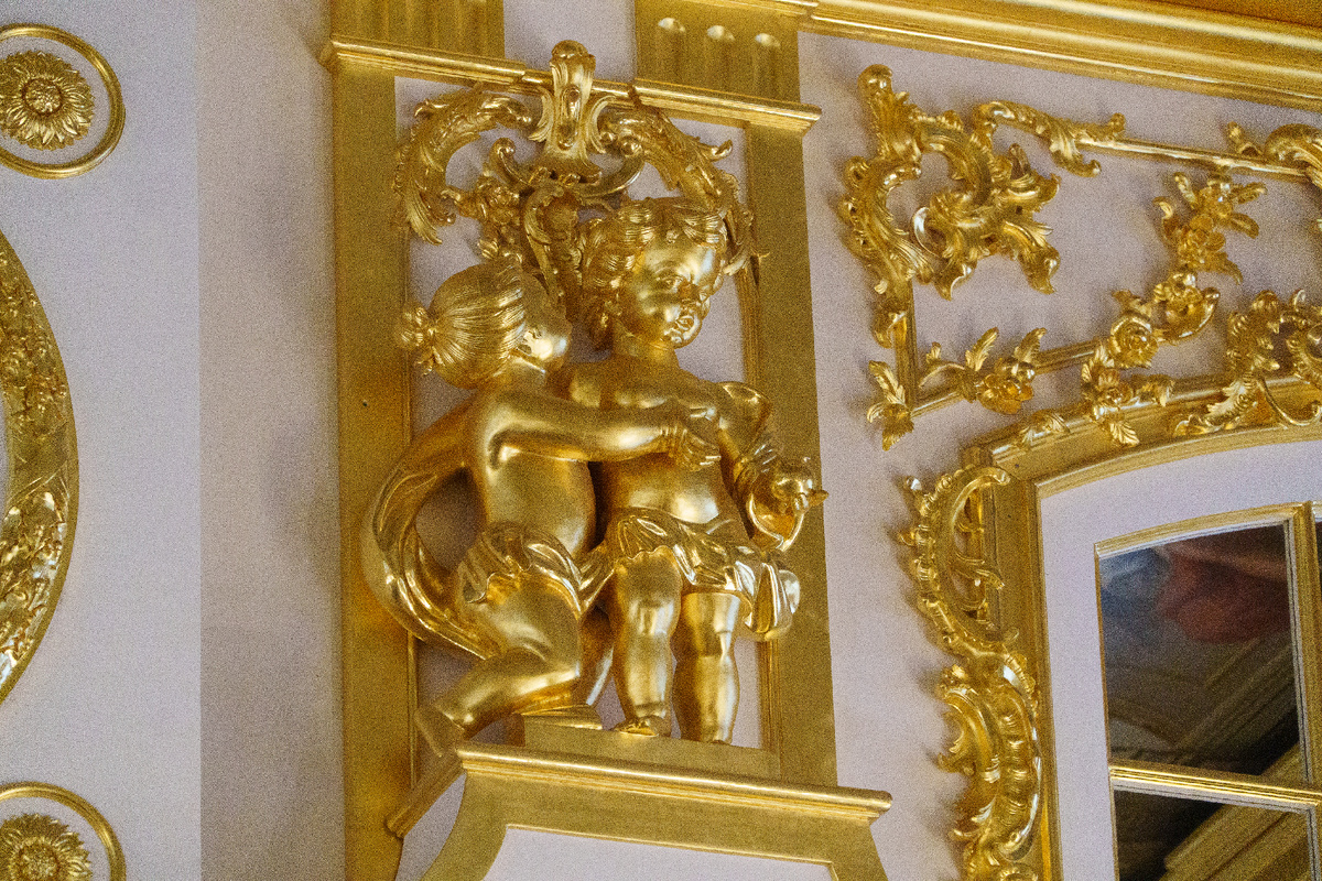 - Золотая анфилада парадных помещений – включает множество столовых, гостиных и столбовых