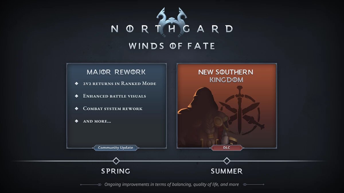 Разработчики стратегии Northgard опубликовали дорожную карту игры на весну и лето этого года. Игрокам стоит ожидать новый клан, возвращение рангового режима 2 на 2, визуальное улучшение боев и многое другое. Кланы играют важнейшую роль в том, что мы постоянно работаем над новыми обновлениями для игры спустя столько лет. Вслед за обновлением сообщества дебютирует совершенно новый клан. Клан из региона, который мы не исследовали уже довольно долгое время и который был весьма востребован... Прошедший год был насыщен событиями: три крупных обновления и два DLC расширили игру интересными способами. Однако, двигаясь вперед, разработчики хотят сделать шаг назад и сместить акцент на более прямой подход. Их цель в этом году - прислушаться к отзывам игроков и определить приоритеты для тех функций и улучшений, которые будут наиболее востребованными и могут быть сделаны в срок.