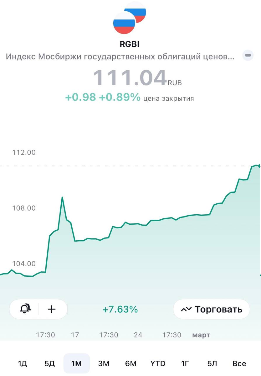 5 марта на Мосбирже наторговали 92,4 млрд руб. в ОФЗ — это в 8 раз больше, чем в среднем в 2024 году. Очень впечатляюще. В чем причина ажиотажа? Как только Трамп заговорил о возможном завершении конфликта, спрос на российские гособлигации резко вырос. К тому же рынок больше не ждет нового подъема ключевой ставки, а это дополнительный стимул для покупателей. ↗️ В результате индекс цен на гособлигации RGBI продолжает расти — сегодня уже на уровне 111. Насколько вообще сейчас интересны облигации? Друзья, мы постоянно говорим о потенциале этих бумаг. Буквально кричим об этом в наших каналах каждый день. Например, особенно подробно писали в среду о том, какие облигации надо покупать — пока еще не поздно зайти в этот вид активов. ➡️ Если кратко — обратите внимание на облигации первого эшелона: доходность по некоторым сейчас достигает 20–22% (Х5, МТС, Ростелеком), но с ростом цен итог может выйти и за 30%. Если вы готовы взять немного больше риска, во втором эшелоне можно получить 22–25% годо