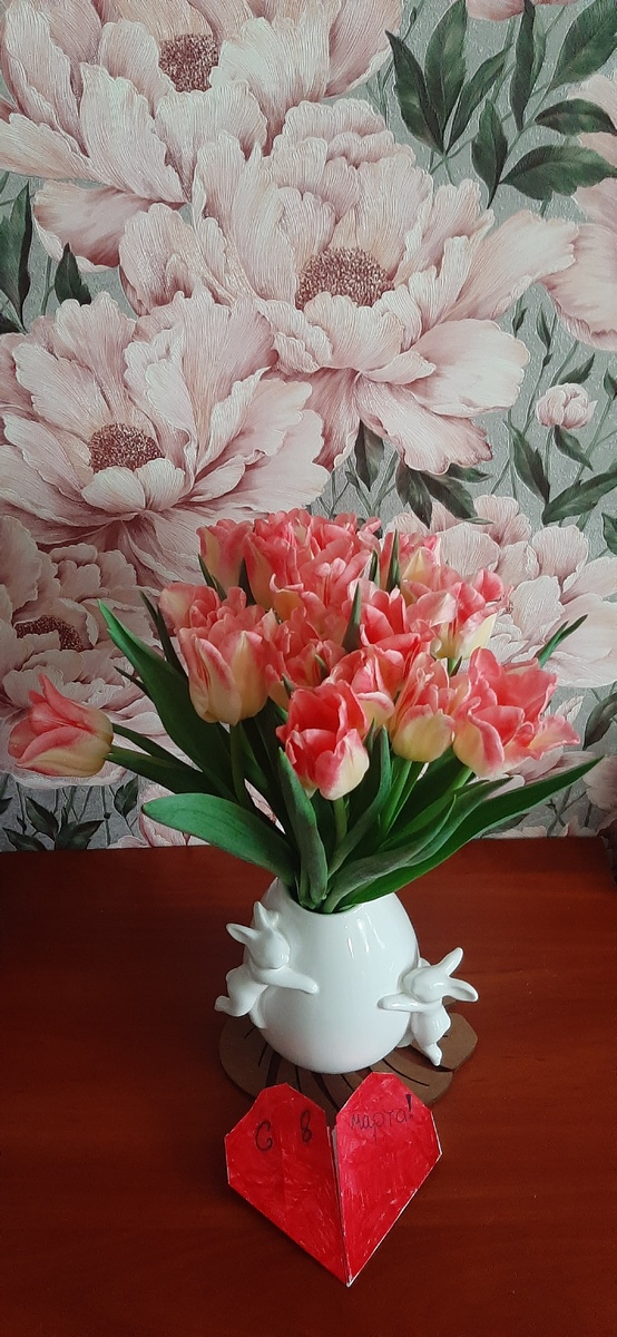 Затем муж мне сварил кофе, а сын подарил самодельную открытку.
