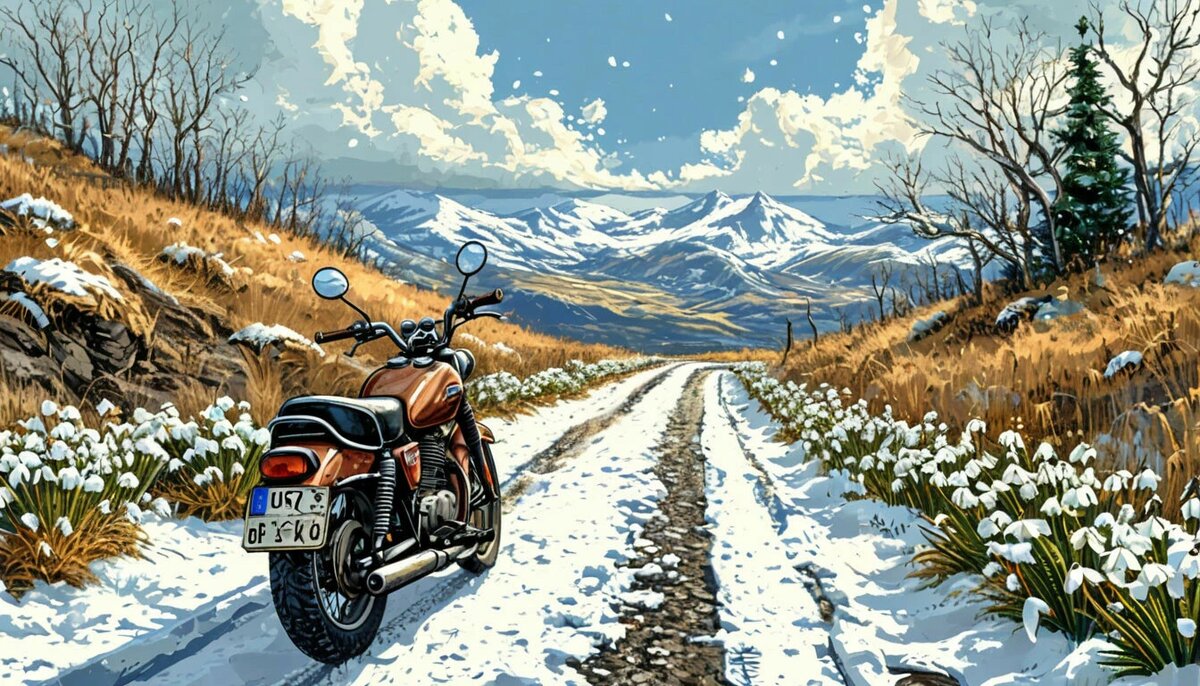 Утро начиналось как обычно. Валера, потягиваясь, смотрел в окно своей комнаты. За стеклом светило яркое весеннее солнце, и казалось, что весь мир проснулся вместе с ним. Сегодня был особенный день — Юра обещал показать ему свой новый мопед, который на день рождения подарили родители. А еще они собирались сделать подарок своим одноклассницам. Они учились в седьмом классе. Валера быстро оделся, схватил рюкзак и выбежал из дома. Юра уже ждал его у подъезда, восседая на мопеде. «Карпаты» — было написано на оранжевом бензобаке. Его лицо светилось от гордости и предвкушения приключений. — Ну как, красавец? — спросил Юра, похлопывая по рулю. — Офигенный! — восхищенно ответил Валера. — Ну что, поехали? — Поехали! — Юра завел мопед, и они отправились в путь. В степи за поселком, говорят, уже расцвели подснежники. Друзья давно мечтали сделать подарок для своих одноклассниц — Маши и Веры. Идея с подснежниками казалась им идеальной. Степь встретила их свежим ветром и бескрайним простором. Они съ