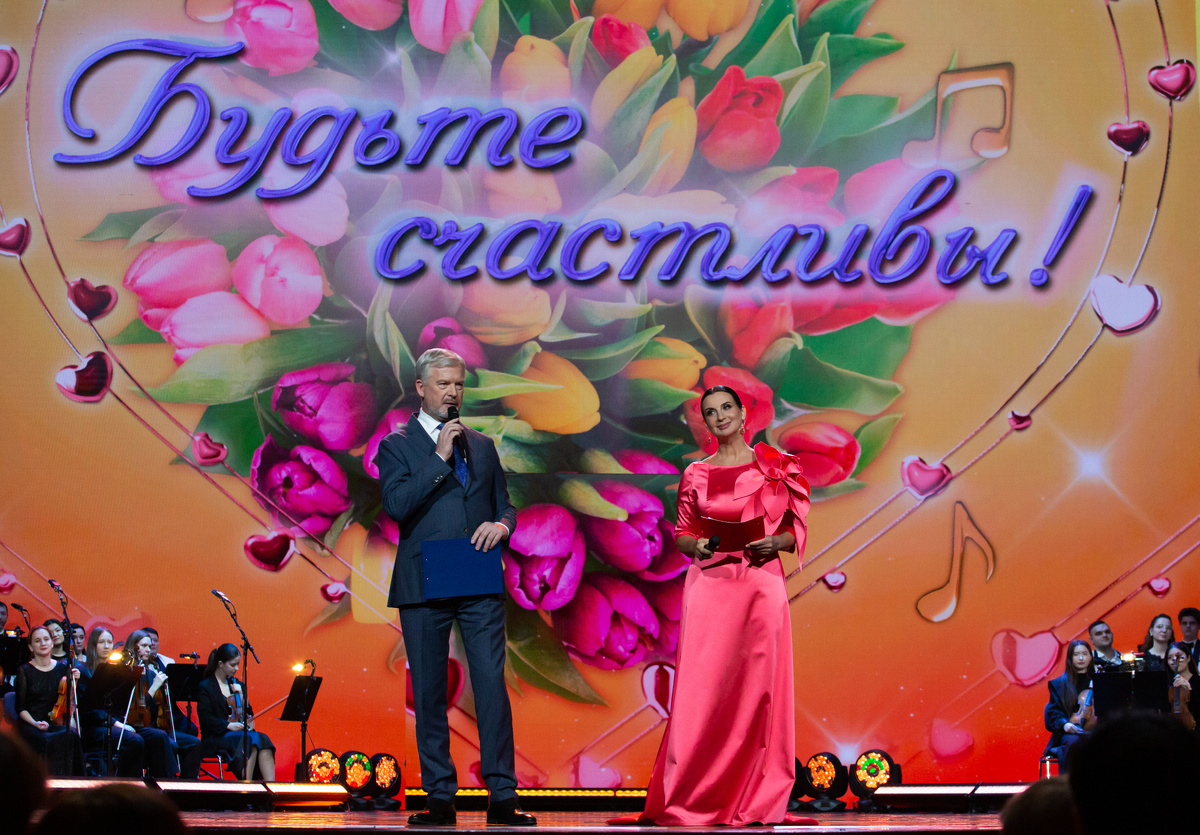 Коль уж мы упомянули о видеопоздравлениях, то сразу скажем, что они прозвучали также от народного артиста России Владимира Машкова, прославленного, легендарного спортсмена, президента Федерации хоккея России Владислава Третьяка, лётчика-космонавта РФ Героя Российской Федерации Антона Шкаплерова, народного художника России Никаса Сафронова, воспитанников Московского суворовского военного училища. С особым волнением гости вечера слушали приветствие Героя Российской Федерации, участника специальной военной операции полковника Рустама Сайфуллина, который обратился со словами поздравления, прежде всего, к женам и матерям военнослужащих, женщинам, чья любовь, мужество, терпение поддерживают наших бойцов там, в зоне боевого соприкосновения, и придают им сил.