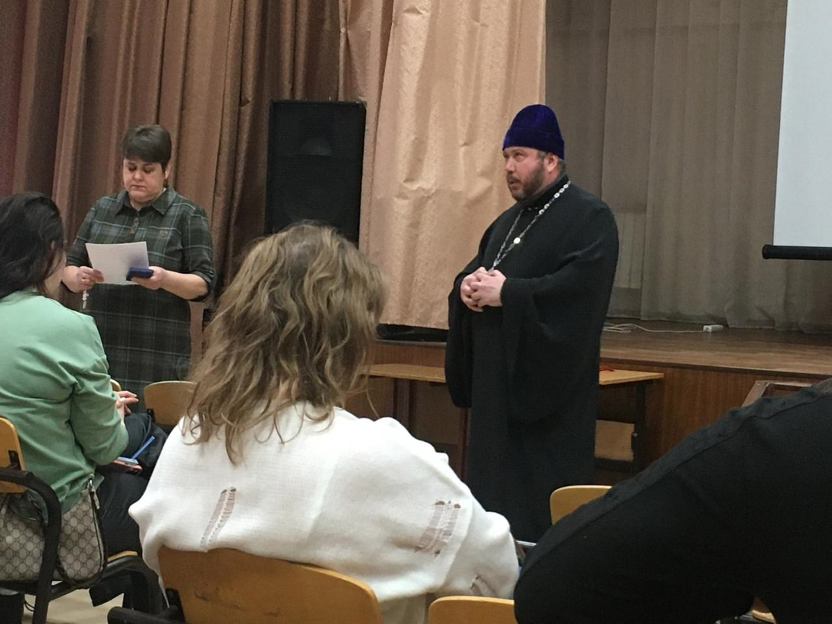 С родителями учащихся побеседовал настоятель храма Казанской иконы Божией Матери пос. Усинского иерей Евгений Седин. Встречу посетили 50 человек.