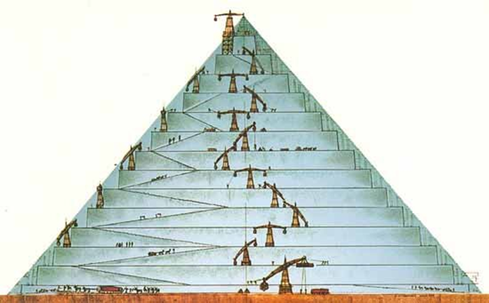 Современные исследователи выдвигают различные теории, касающиеся технологии строительства пирамид. Согласно одной из них, для подъема каменных блоков использовались деревянные рычаги или качалки. Рабочие поднимали блоки, поочередно подкладывая под них рычаги и перемещая их на следующий уровень.По другой – для подъема блоков использовались наклонные насыпи (рампы), которые строились рядом с пирамидой. По мере роста пирамиды насыпь удлинялась или изменяла свою форму (например, становилась спиральной). Блоки перетаскивались по насыпи с помощью деревянных саней или полозьев. Тем не менее, ни одна из теорий полностью не объясняет все аспекты строительства пирамиды. Скорее всего древние египтяне использовали комбинацию различных методов в зависимости от этапа строительства и типа блоков. АрхИстори в телеграмм