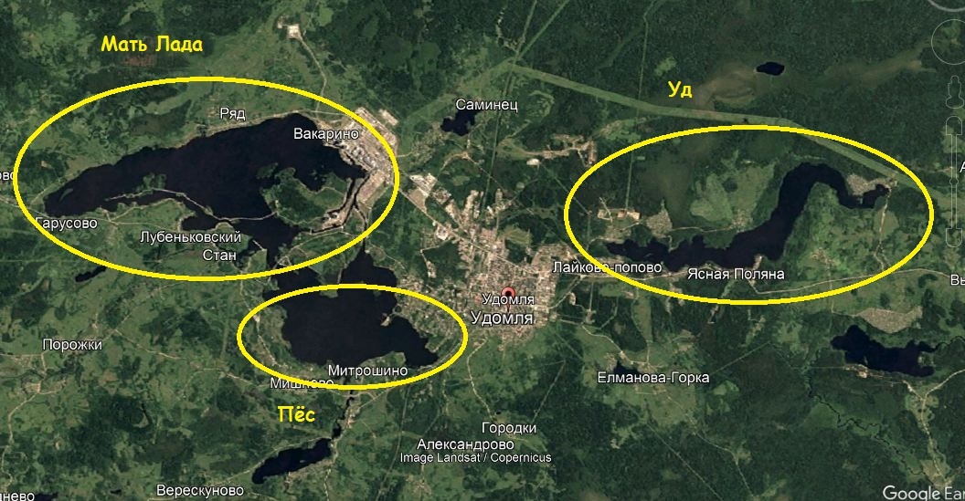 Озеро Удомля- похоже на медведя, то есть Большая Медведица, М-ля- Мать Лада.